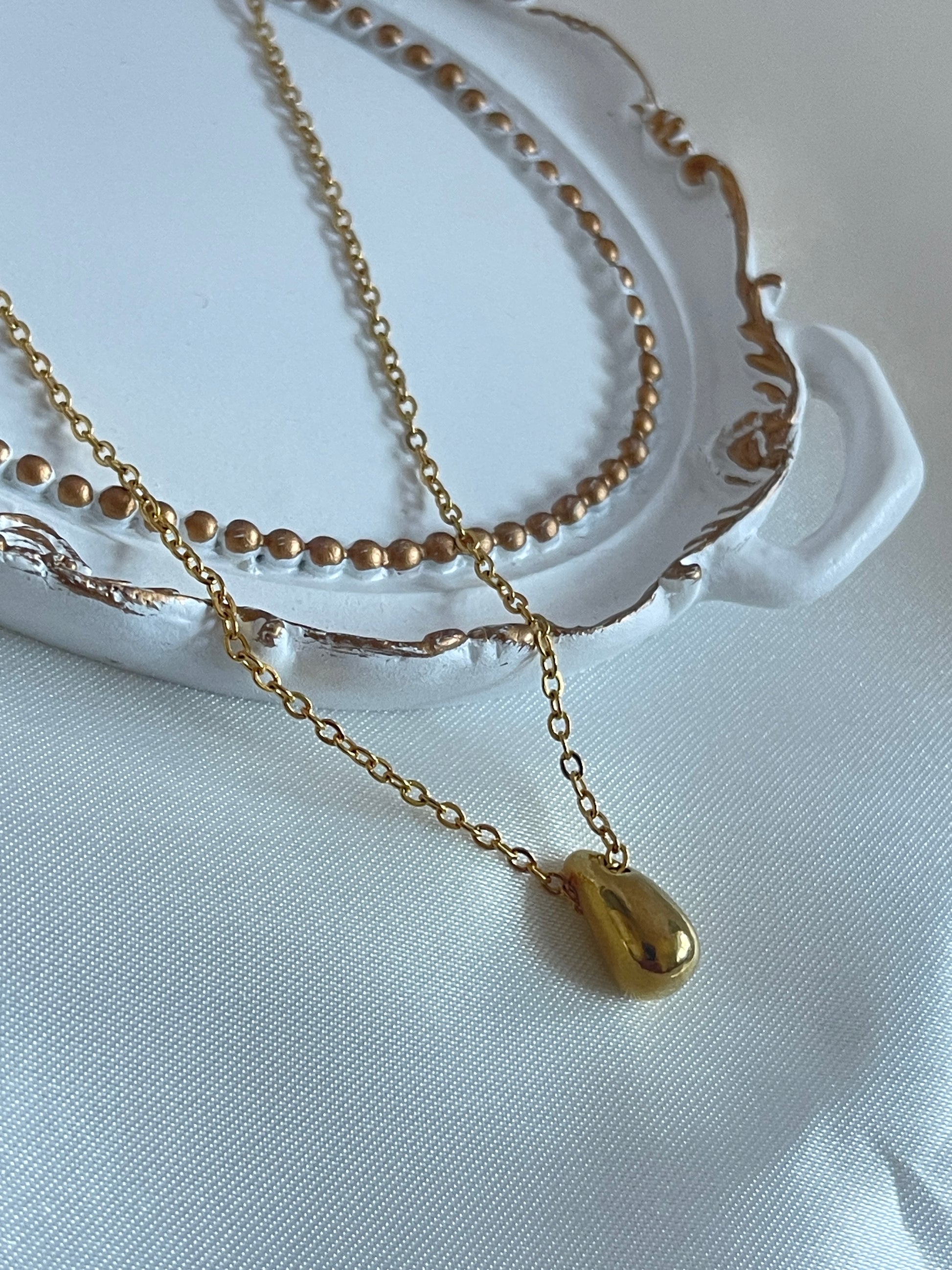 An elegant teardrop-shaped pendant, symbolising both elegance and simplicity, designed to capture light and radiate brilliance.