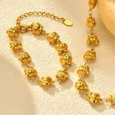 * Elevate Your Style: This stunning chunky crown bracelet includes a little crown and a full chain. It's perfect for adding a touch of elegance to any outfit. Pair it with the matching necklace to complete your look.