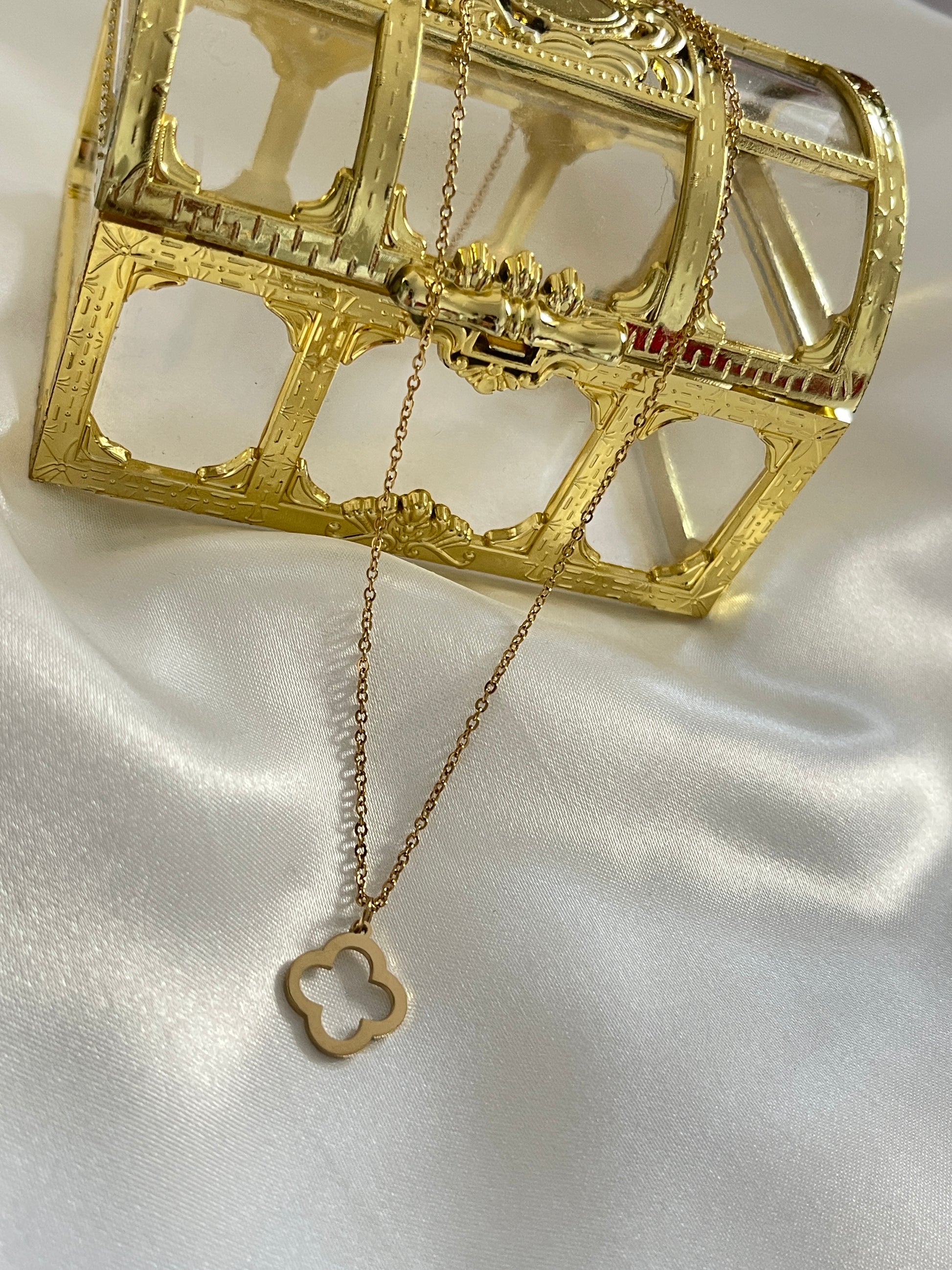 Embrace simplicity and elegance with our Clover Shape Empty Necklace. This minimalist piece features a delicate clover outline, perfect for adding a touch of charm to any outfit.