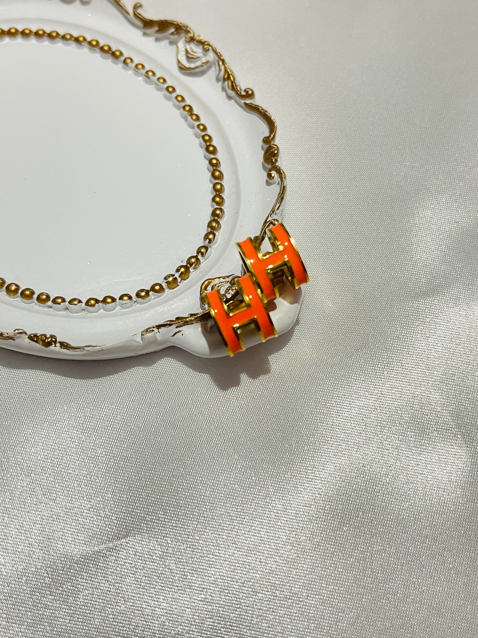 Elevate your style with our Initial H Gold and Orange Studs, a chic and personalized accessory that adds a pop of color and sophistication to your ensemble.