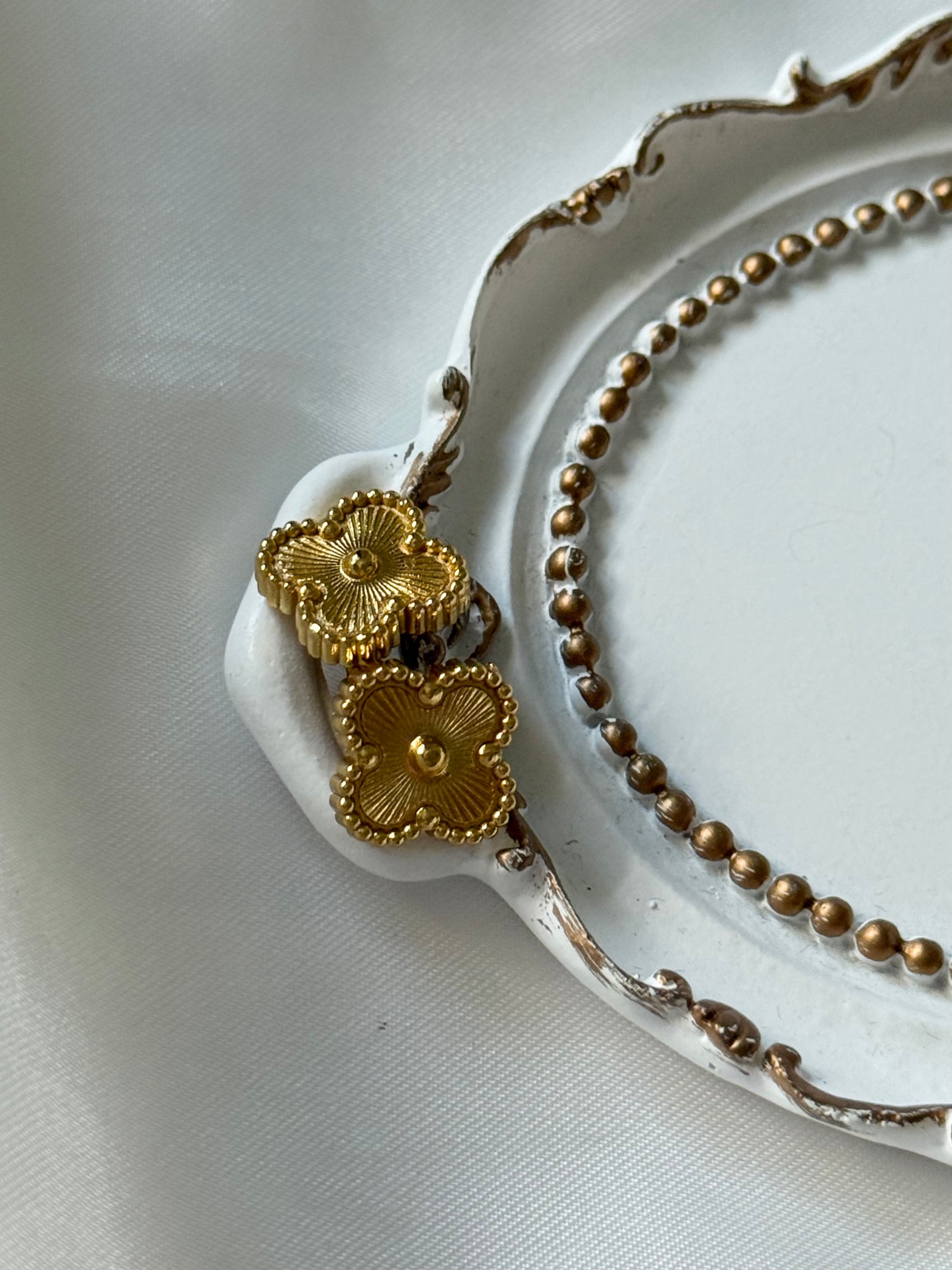 Design: Classic four-leaf clover shape with a subtle dot at the center, offering a modern twist on a timeless symbol.