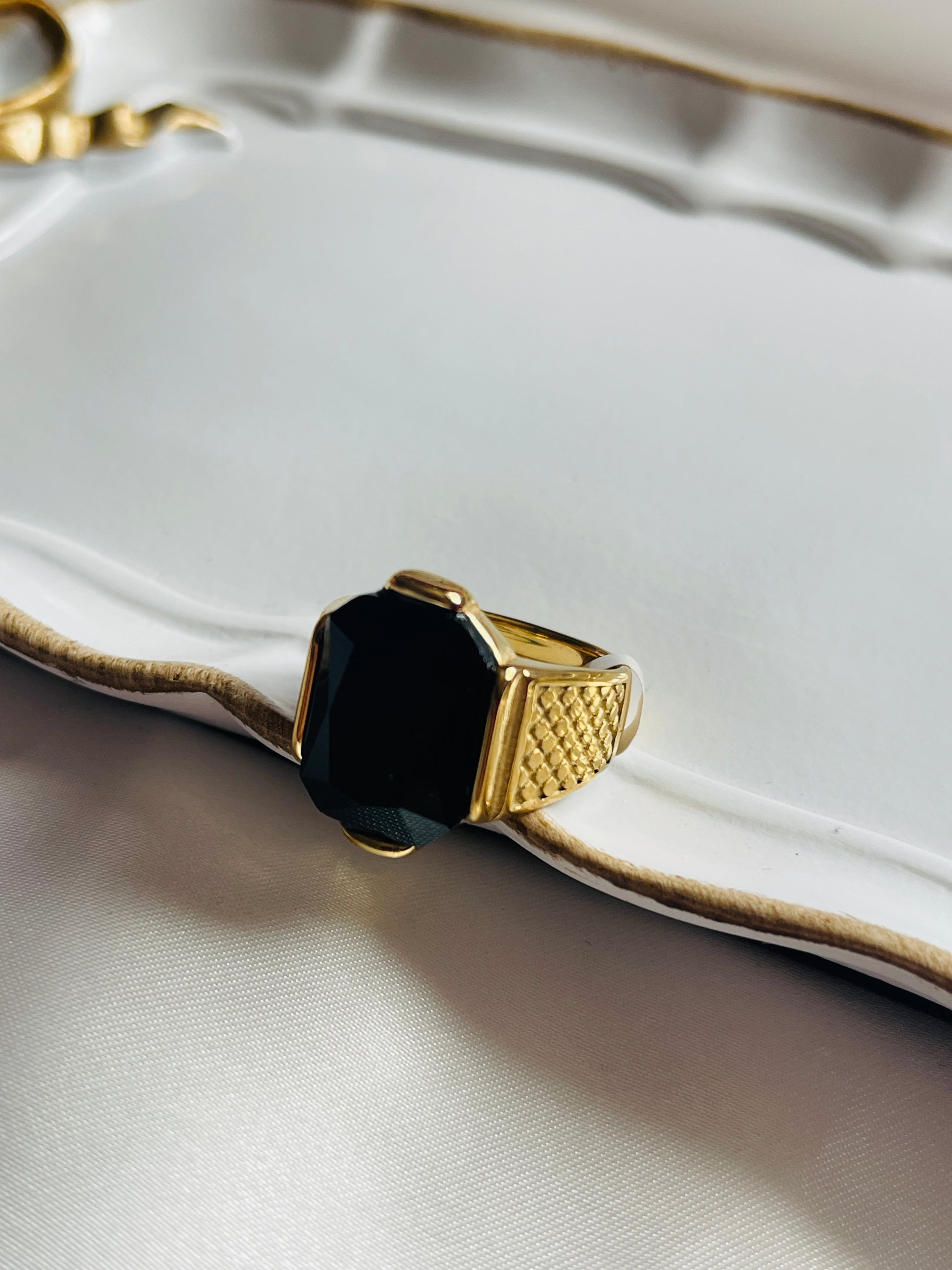 Elevate your style with our Men’s Onyx Gold Ring, crafted from durable stainless steel. This ring features a bold onyx stone set against a luxurious gold finish, offering a striking combination of elegance and strength.
