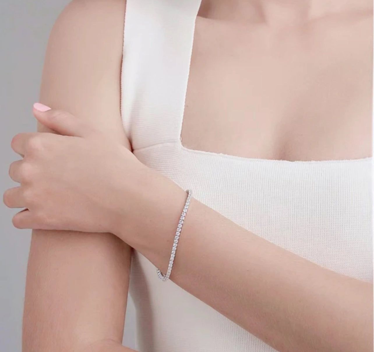 3mm Moissanite Tennis Bracelet Full Diamond GRA 925 Silver Plated 18k