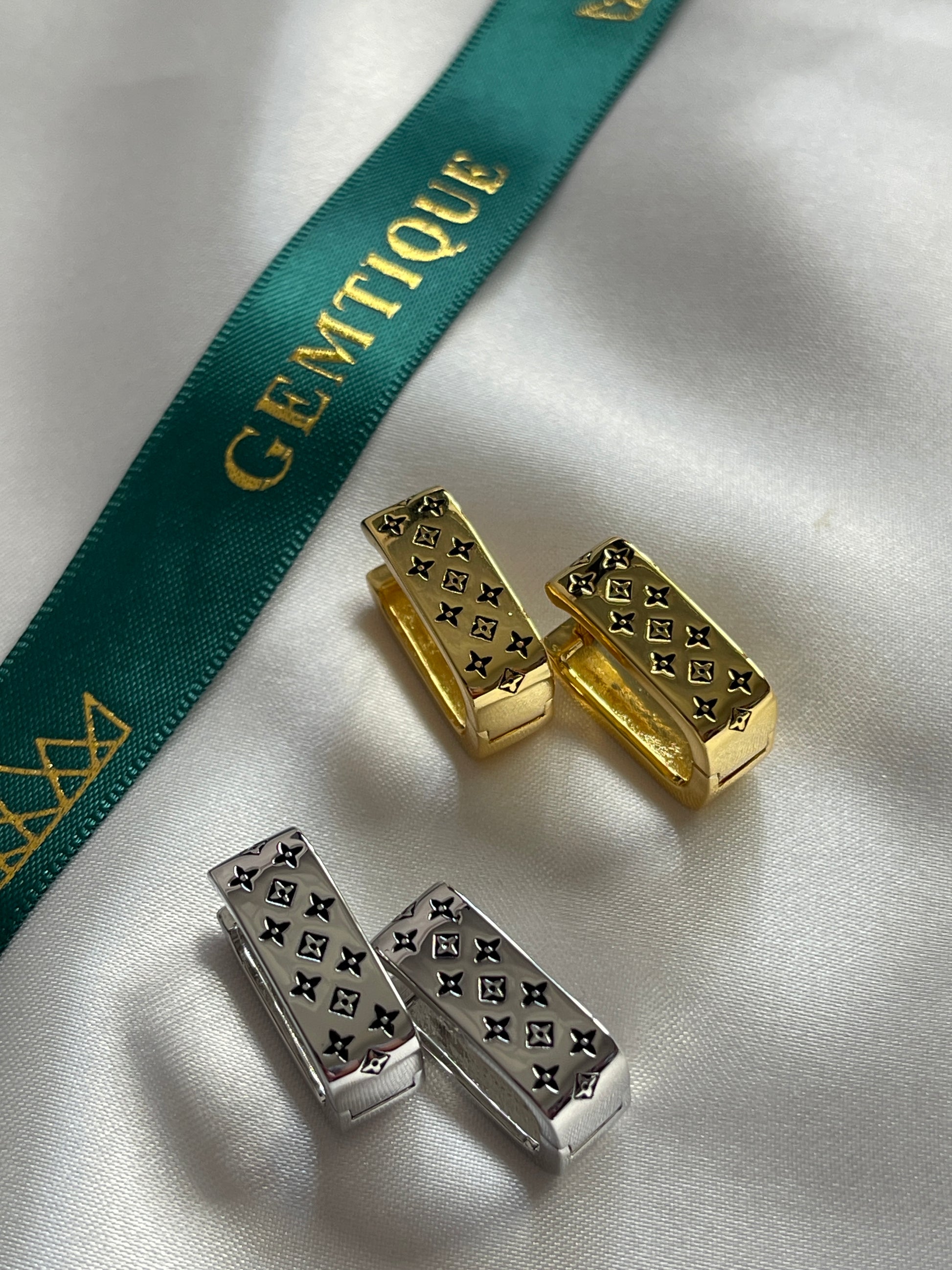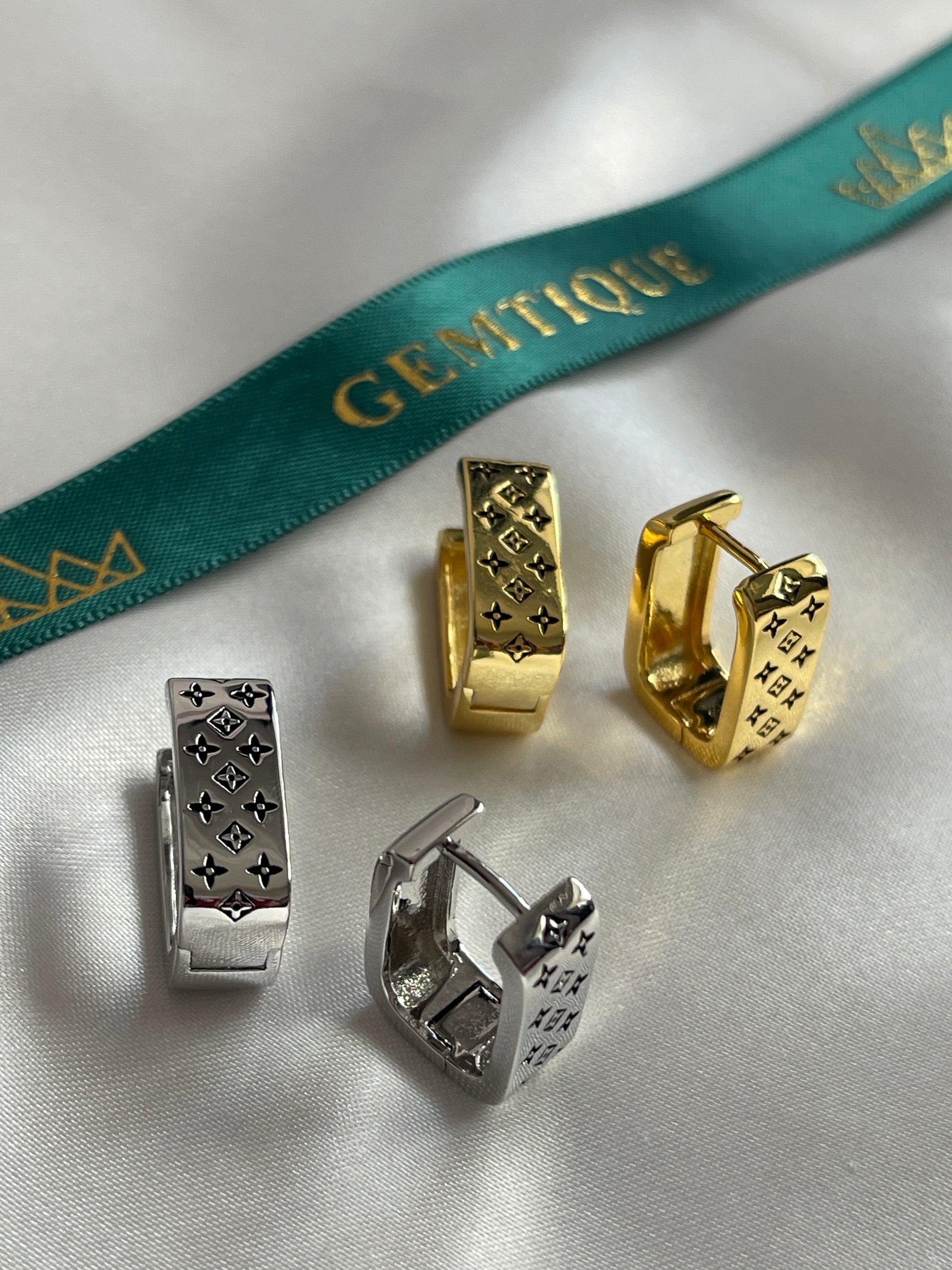 Design: These hoops feature a sleek and stylish monogram print, elegantly displayed on the surface. The intricate monogram design adds a touch of sophistication and modern flair, making these earrings stand out.