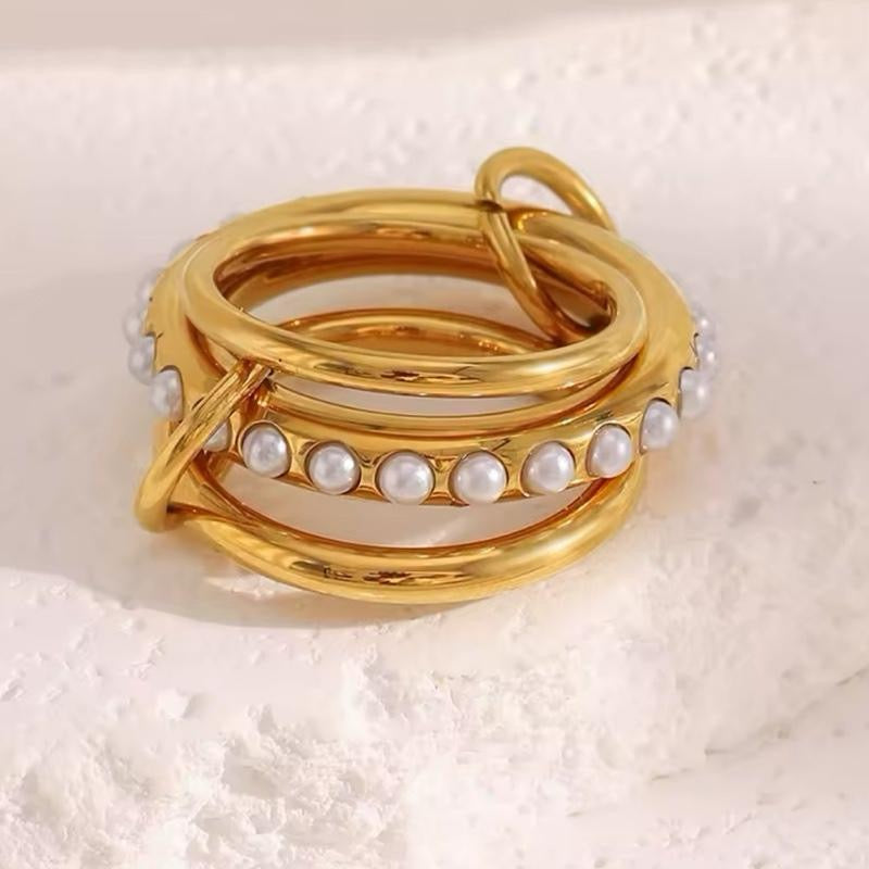 Stylish and versatile, our Interlock Rings are available in three signature styles: Pearl, Stone, and Multi. Crafted from high-quality stainless steel and finished in gold or silver, these rings offer lasting shine and durability. Their interlocking design adds a modern, elegant touch—perfect for stacking or making a statement on their own.